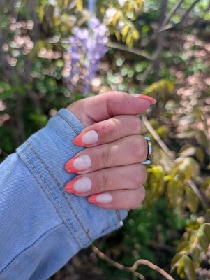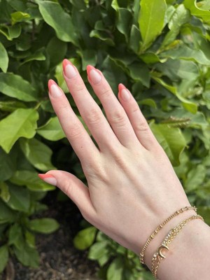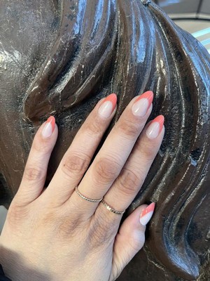 [This review was collected as part of a promotion.] Ride into the Sunset is the perfect pink French. The color and design makes them versatile - classy, casual, sassy, fun & flirty, whatever look you are going for, these can be part of it! They are ideal for transitioning from spring to summer. Initially I wasn't sure I would like the thicker French, but once I had them on, I loved them. The almond shape instantly makes me feel more stylish. Olive & June press-ons are unmatched. They are comfortable, look like real nails, and last forever. I usually wear them for 1 1/2 to 2 weeks. The wide range of sizes mean you get the perfect fit. I get so many compliments wearing O&J press-ons, and people are always shocked I did them myself.