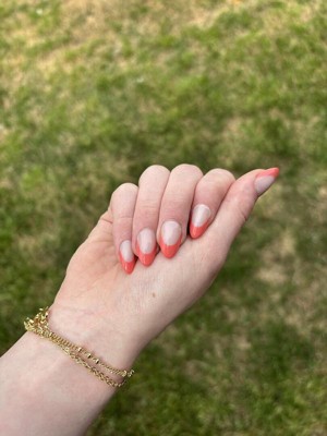 [This review was collected as part of a promotion.] I wasn’t sure about the color at first, but once I had it on I really loved. Very summery. Lots of compliments as usual. They look natural. Always tell people oh they are press-ons. Great sizing range so they fit each finger well. I work in hardware so my nails usually last about week before one pops off; occupational hazard. No natural nail damage.