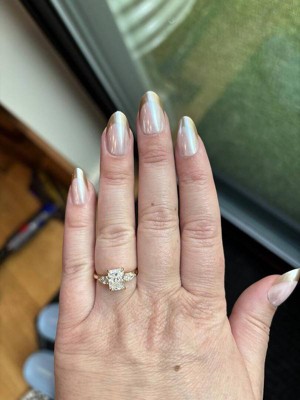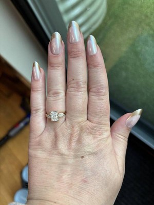 [This review was collected as part of a promotion.] These nails feel pretty good once they are on but I struggled to find the right sizing. The colors look nice on but the nails look a little big on my fingers. I think the gold tip is pretty and it looks great with my engagment ring.
