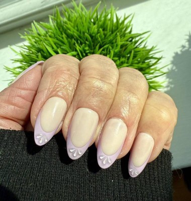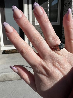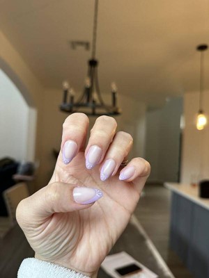 I liked this set a lot! I took a star off for the new packaging. The numbers aren't printed on the plastic tray and the sizes aren't in order in the tray, so look carefully when you're using those nails. I also sized up for my thumbs due to the almond shape. I loved the texture of the petals on the tips, although I think they would be even more fun if they were a contrasting color instead of clear. The purple shade on the tips was lovely!