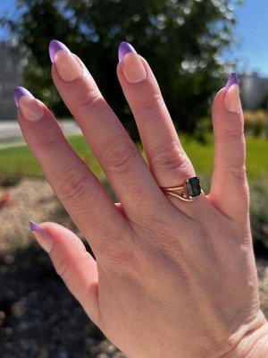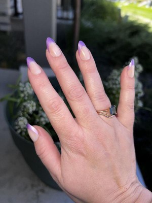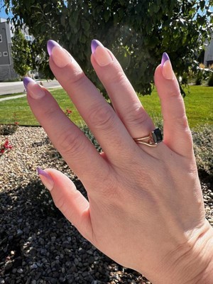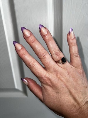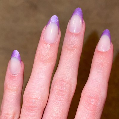 [This review was collected as part of a promotion.] The pictures or even looking at these press ons do not do it justice-you need these on your nails to see the beautiful aura effect. The French tips are not just purple velvet-there's a pink sunset aura to them that is gorgeous. And I always love a medium almond shape.