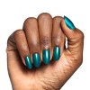 - An emerald green mani with a shimmery chrome effect in a medium oval shape.