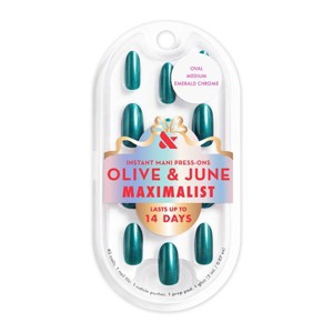 Olive & June Press-On Fake Nails - Maximalist - M Oval - Emerald Chrome - 42ct