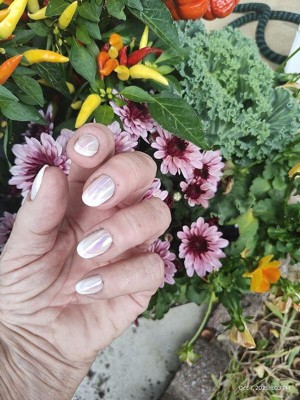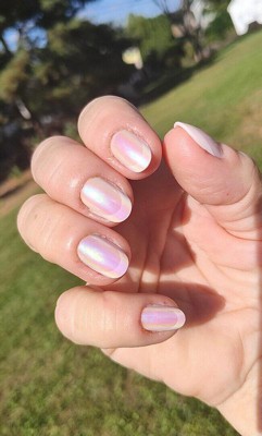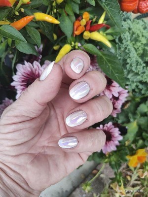 Chrome/ iridescence is only a stripe in the middle and the sides of the nails do not have it. I assume this is a defect because it looks strange