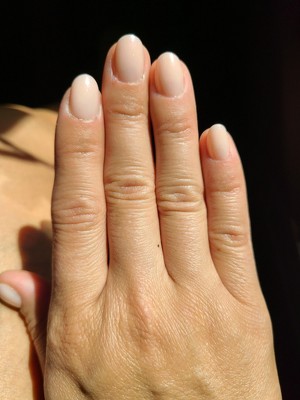 [This review was collected as part of a promotion.] The sandy color and most delicate shimmer in an XS length come together to make an infinitely wearable, yet still interesting, set! My daughter called them “princess nails” but they felt perfectly minimalist for every day.