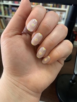 Super easy to apply. Lasted several days before I felt restless for a new manicure and had to take them off. Use the remover system, it’s fantastic! Design is subtle but super sweet especially for when you’re ready for some sunshine! Goes with everything. I have short nail beds so I typically file down, but these I kept the length for.