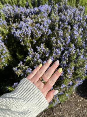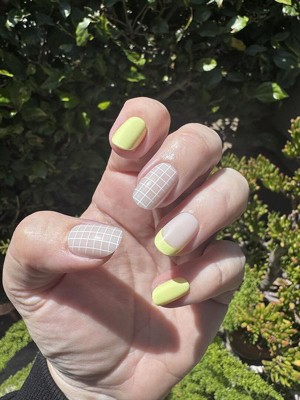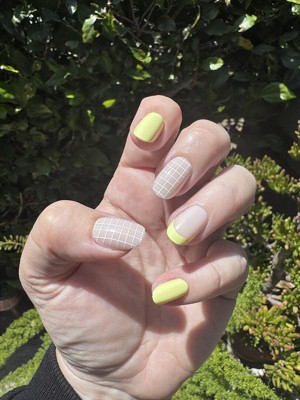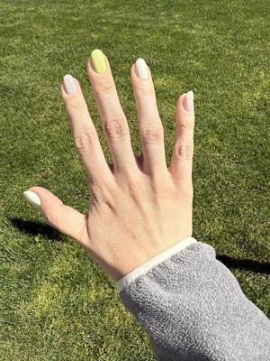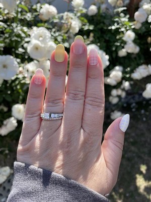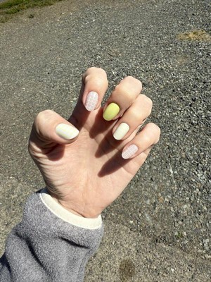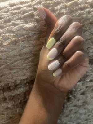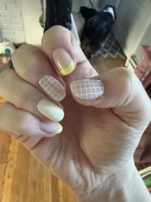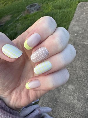 Love these round press-ons! The tennis vibe, literally, is so cute. It’s different than I would have normally picked but the yellow on them intrigued me and it turned out to be everything I thought it would be. It’s bright and perfect for spring! Short round is my go to length and shape for glue press-ons and they lasted 10 days. I would recommend these!