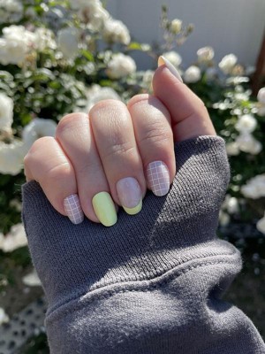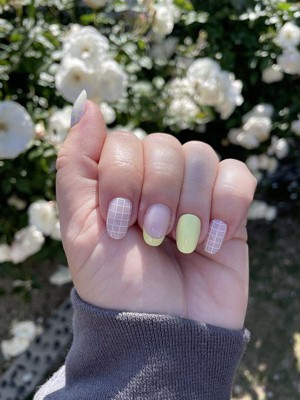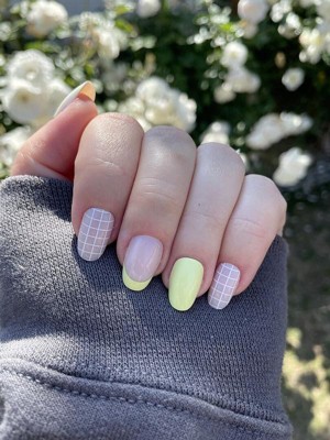 The design of these nails is so fun! My sizing made it so I didn’t get to use any of the French tip nails, but the rest of the design was so cute together! My favorite one was the nude base with the white grid design (I’d love these in a standalone set)! This was also the design that was the most durable. The solid green and white base with green grid design ones did end up with the design print chipping at the tip, starting about day 5. I was able to wear them for 13 before they got to be too long from my grow out, and it was about time with the design chipping. Overall these were fun, and I’d recommend for a shorter period of wear than the standard for glue press-ons.