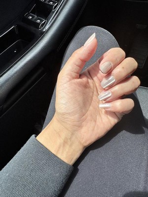 [This review was collected as part of a promotion.] So pretty and light! Lasted for 7 days until thumb popped, used a super stick to replace and lasted for 12! These do lean a little gray so I didn’t love them on my coloring, but short squoval is my favorite shape,