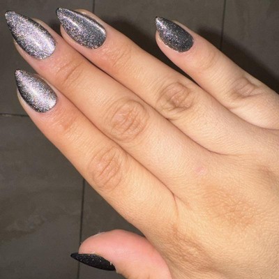 - An inky black velvet mani in a medium stiletto shape. The realest-looking fake nails you've ever seen.