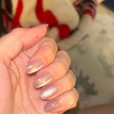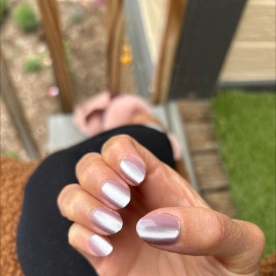 - A purple-pink mauve mani with the coolest magnetic velvet effect in a short round shape. The realest-looking fake nails you've ever seen.