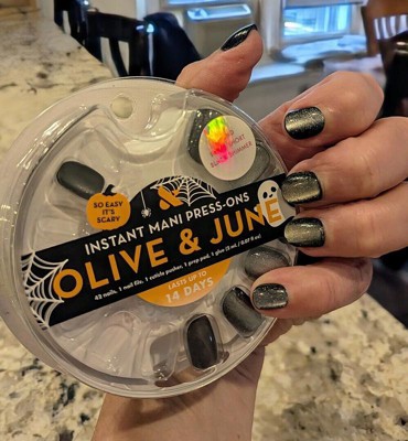 Meet the realest-looking fake nails you've ever seen. The Instant Mani by Olive & June are press-on nails that come in 21 sizes (the most ever!) with the realest-looking fit. Each package contains 42 total nails and everything you need for a perfect press-on mani at home. Straight from the salon, better than gel. Lasts up to 14 days thanks to non-toxic and non-damaging glue. Fake nails never looked so real.