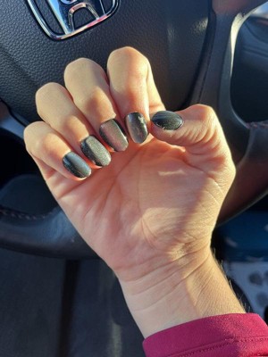 [This review was collected as part of a promotion.] These black shimmer press-on nails are the definition of gothic elegance—dark, dramatic, and glowing with a magnetic shimmer that catches the light like moonlight on obsidian. They're bold without being over-the-top, and effortlessly elevate any look with a mysterious edge. The application process wasn’t entirely seamless—despite following the prep steps closely, a few nails were a bit tricky to secure and came off not long after. But once I got them properly in place, they held strong and looked flawless. If you're up for giving them a little extra care during application, they’re absolutely worth it. These are perfect for anyone who loves their glam with a dark, luxurious twist.