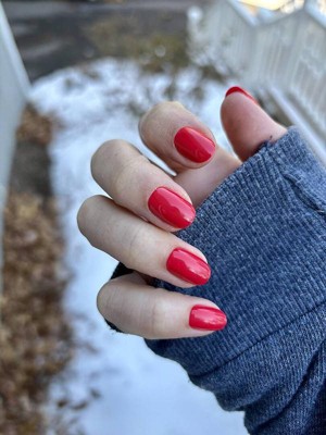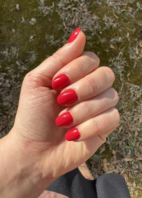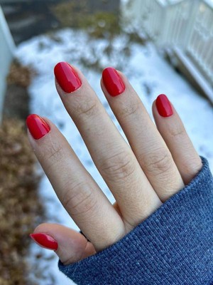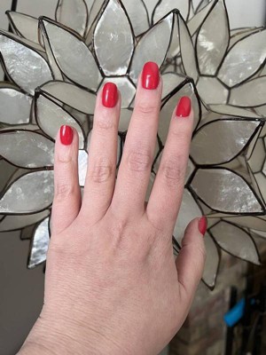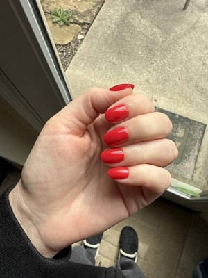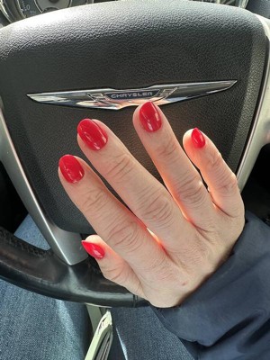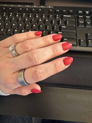 [This review was collected as part of a promotion.] Great red mani in no time flat! Seems a little darker than its long lasting polish of the same name, but stunning nonetheless. I used the short term method and they popped off after just one day - less than typical, but maybe user error. And while they were on, they were very fun to look at! XS was a great size for me - still longer than my natural nails, but not so long that I felt uncomfortable.
