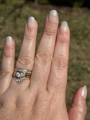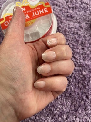 [This review was collected as part of a promotion.] I really enjoyed these nails and received so many compliments. It is a nice neutral color with silver glitter tinsel at the tips. The shape and length is practical and provides an elevated look. I would definitely get these again.