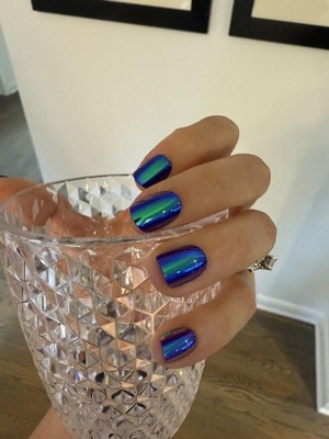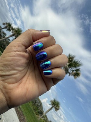 Olive & June Press-On Fake Nails - XS Squoval - Electric Blue Iridescent Chrome - 42ct
