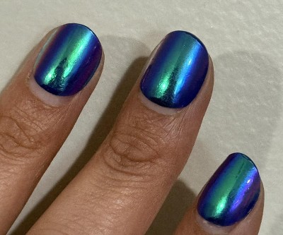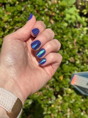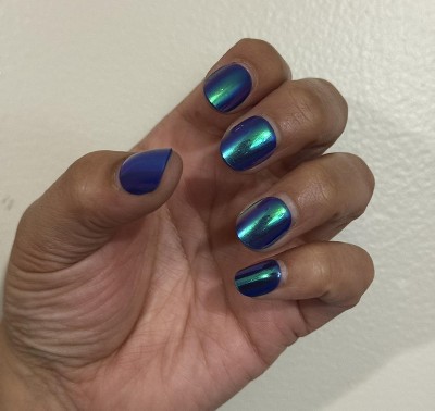 [This review was collected as part of a promotion.] Absolutely loved these press-ons! The chrome blue shade is absolutely gorgeous—it shifts beautifully between hints of purple and green, and I got so many compliments while wearing them. They’re easily one of my all-time favorites. Like all Olive & June press-ons, they were a breeze to apply and stayed on really well. If you’re looking for nails that truly stand out and make a statement, these are it!