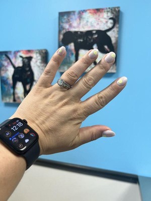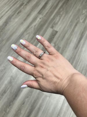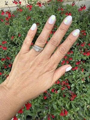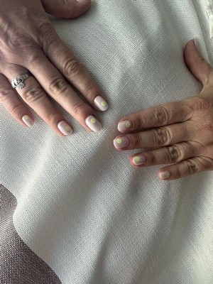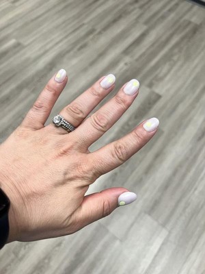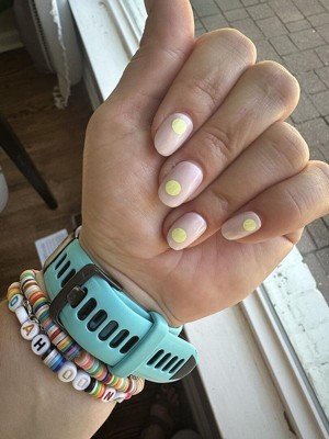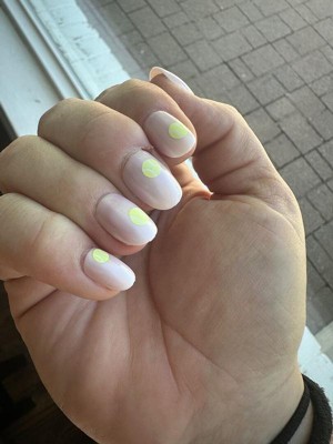 [This review was collected as part of a promotion.] I’m really impressed with these Olive & June press-ons! They were super easy to apply—took me about 20 minutes start to finish—and they lasted a full 2 weeks with no lifting or popping off. The design is adorable pearly white that does not show the nail line with a super cut yellow green tennis ball. They look so cool under black light, which was such a fun surprise. I’ve gotten a ton of compliments. Definitely recommending these to friends!