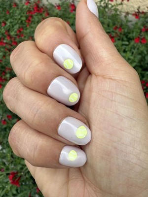 [This review was collected as part of a promotion.] I loved the white opalescent background and the cute tennis ball design in different spots on the nails. These are perfect for tennis players, theme parties, or Wimbledon! If you have long nails beds beds extra short squovel might be a little short but I made them work by not putting them right on edge of my nail bed.