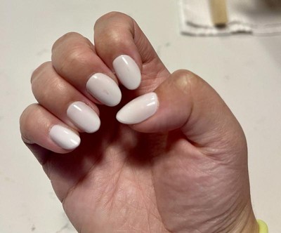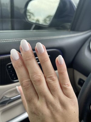 This is my second set of glue press-ons — have had them on for a week. They're great…! Consider me a glue-press on convert. I love how worry-free they are. I had to switch one out because it felt too tight. Don't be afraid to file and customize the shapes to fit your nail. Sizing takes some practice but I'm getting the hang of it. These look &, feel great. This color leans much more white than pink, but I selected it for that reason because I wanted a soft white vs. the bright &, stark white of the HD press-ons. These do not read pink on me at ask, and I'm ok with that. If you want a lighter pink, these won't give you that… I would explore other pale pink press-on shades.