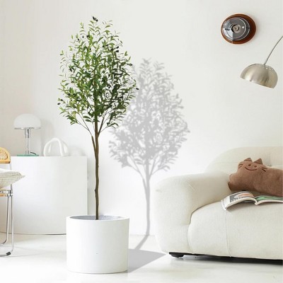Olive Tree Artificial, Faux Olive Tree with Pot, Fake Tall Plant Indoor Outdoor with Natural Wood Trunk & Lifelike Fruits for Home Office Living Room