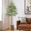Designed for versatility, this decorative olive tree is ideal for adding a touch of greenery to living rooms, patios, offices, or commercial spaces. Its tall and slender profile fits seamlessly into corners or next to furniture, creating a calming and inviting atmosphere. The durable materials ensure it withstands various environments, making it suitable for both indoor and outdoor use.