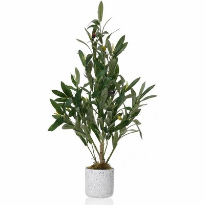 Olive Trees Artificial, 3.9 ft Faux Olive Tree with White Planter, Artificial Plants with Realistic Leaves and Fruits for Home House Office Décor