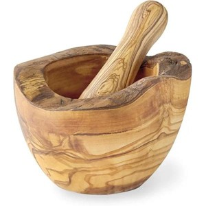 - Olive wood is a very hard wood; great for grinding spices. Moreover; the stunning natural patterning of olive wood makes this a beautiful mortar and pestle.