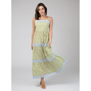 Elevate your summer style with the Mallorca Maxi Dress in Green, a perfect fusion of elegance and comfort. Crafted from 100% lightweight cotton, this dress offers a soft and breezy feel for those warm, sunny days. Each dress is meticulously handmade in India and features exquisite blockprinting. Featuring a tiered skirt that flows beautifully with every movement, the contrasting colors and patterns along the skirt add a playful touch. The adjustable straps and smocked back provide a secure and comfortable fit ideal for all day wear. Guaranteed to be your go to for summer picnics and days on the beach.