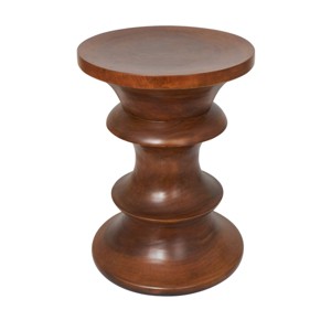 Wood accent table is perfect for use as an end table next to a chair, as a nightstand in the bedroom, or as a plant stand in empty corner spaces. This item ships in 1 carton. Suitable for indoor use only. This item ships fully assembled in one piece. Maximum weight limit is 100 lbs. Made in Indonesia. This is a single brown colored end table. Natural style.