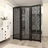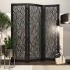 This room divider screen is perfect for creating separate living spaces or adding visual interest to a room. This item ships in 1 carton. Suitable for indoor use only. This item ships fully assembled in one piece. Made in India. Item features 3 panel screens. This is a single black colored folding panel partition. Modern style.