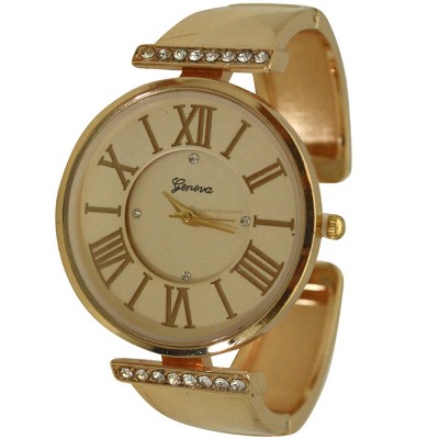 ROSE GOLD FANCY RHINESTONE 3-DIAL METAL WATCH