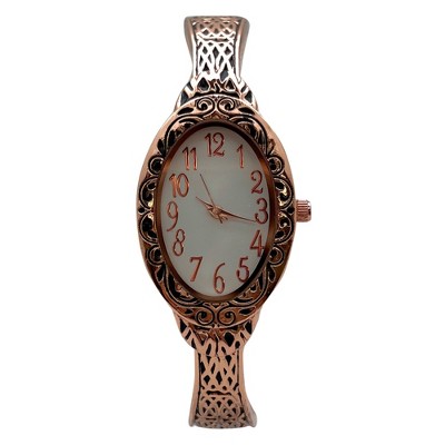 I got the silver one and it's so, pretty! The oval face is larger than expected, but that's great as I can easily read the dial. The textured design looks very elegant and dressy. I love it!