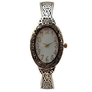 Product Name: Olivia Pratt Gold Oval Face Elegant Textured Bangle Women Watch