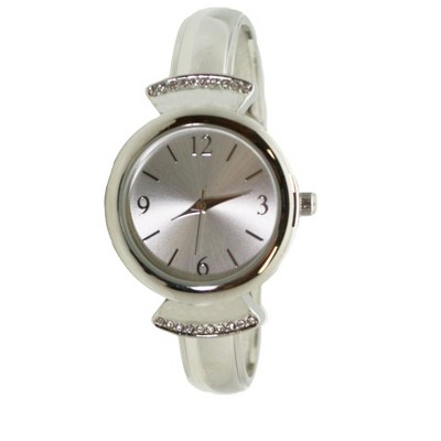 Olivia Pratt Pearl Tone Face Metal Bangle Watch