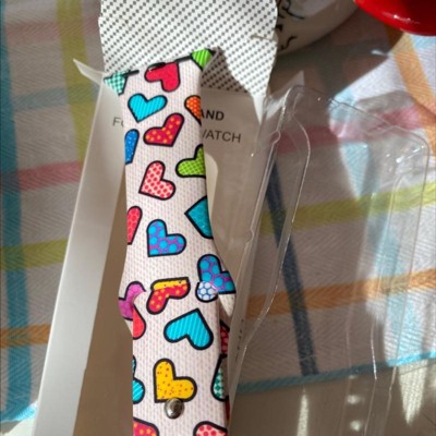 Not as pictured. The product is depicted as a white band with pastel hearts. I received a beige band with multicolored patterned hearts. It’s cute and I’ll keep it, but not what I was hoping for.