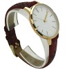 Slim and classic design. Nice for an office setting or daily use. I would have liked it to have a little more weight to it but it keeps time well! The gold looks nice against the watch band and it looks great with most outfits!