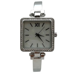 Product Name: Olivia Pratt Silver Square Face Thin Rhinestone Bezel Bangle Women Watch