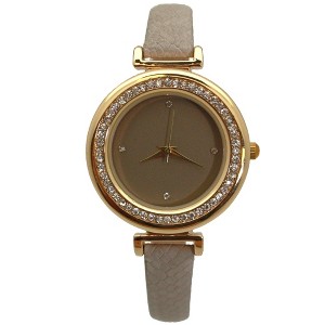Product Name: Olivia Pratt Taupe Thin Solid Color Strap and Rhinestones Women Watch