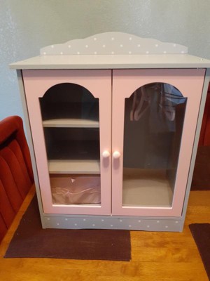 Olivia's Little World Polka Dot Princess Doll Wooden Shaker Wardrobe, Grey/Pink