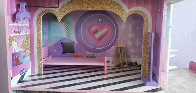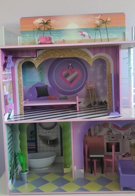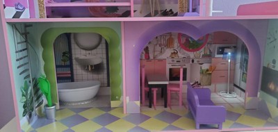 [This review was collected as part of a promotion.] This was pretty easy to put together. Simple floor plan and sturdy structure, very well made. The fun colors and design goes well with my child's surprise dolls. A great vibrant appeal.. This has the right amount of room to play and it comes with furniture. My daughter loves the working lamp and the sound of the toilet. Makes pretend a little more exciting.