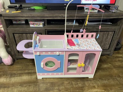[This review was collected as part of a promotion.] This is the cutest bay doll changing station. My daughter loves to play with it. It is made very well, very durable. It has lots of fun things to do with it between the high chair , changing station, washing clothes part, bathing and so much more. It provides hours of fun. Definitely a great little girls toy sure to provide hours of fun.