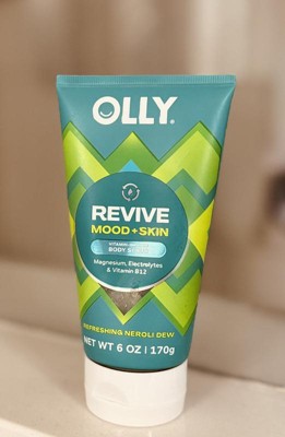 - Revive Your Skin + Mood: OLLY REVIVE MOOD + SKIN Body Scrub is scientifically formulated to repair your skin barrier, while mood-transforming fragrances are proven to help revive your vibe.