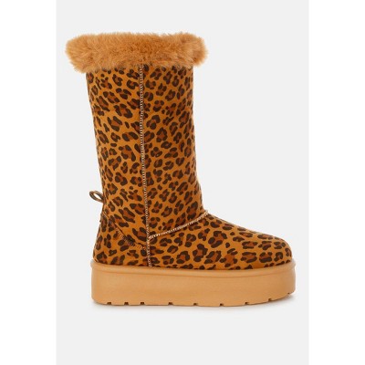 Own the winter chill in style. These snow boots bring the perfect mix of bold and snug, featuring a plush faux fur collar and a chunky high flatform heel for some elevation. With a roomy round toe and a warm calf-length design, they’re built for both style and comfort all season long. Type: Boots Upper Material: Microfiber Outer Sole: TP Rubber Closed Round Toe Faux Fur Collar Detail Chunky High Flatform Heel Paneling Detail Anti-Skid Lug Sole Heel Height: 1.5 inch SH5671