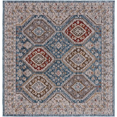 Add a touch of serenity and charm to your decor with this navy and ivory square area rug, and let it be the cornerstone of your home's transitional style.