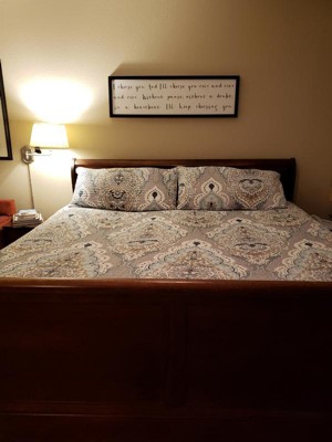 [This review was collected as part of a promotion.] Really like the reversible pattern on this Olyria King Size quilt. It is a great size for the bed and looks great with my decor. The only downside is that the bottom edge of the quilt is not straight but wavy.