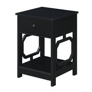 Bring style to your favorite living space by adding the Omega 1 Drawer End Table with Shelf by Breighton Home. Its versatile design will ensure you have everything you need within reach. Showcasing a contemporary style, this table boasts a unique octagon side design. In addition to the two tiers of shelving, this table also features a pull out drawer to stow away entertainment essentials. Constructed of MDF and finished with a non lead based paint, this end table is durable with easy maintenance. Shop the complete Omega Collection by Breighton Home, each sold separately.