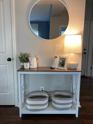 I love the look of this table. It’s the perfect size and height for an entryway. Although beautiful, I have serious buyers remorse. I received it with a huge dent in the top. Which they painted over it in the wrong color white trying to hide it and sent it off anyways. I took it back and ordered another. That one also had a chip on the side, patched and “painted over” again. By the time I noticed I was halfway into assembly it so I just said whatever and kept it. I’m deeply disappointed in target for this. A cute table otherwise. I would recommend buy in store and examining first.
