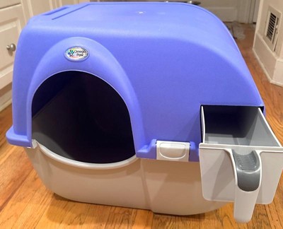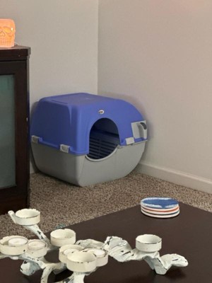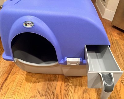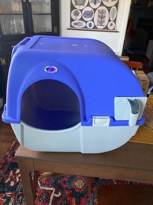 Omega Paw Roll 'n Clean Self Cleaning Cat & Kitten Litter Box, Large, Periwinkle