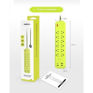 The Omnibar 6 Ft Power Strip Surge Protector is a versatile charging station featuring 12 AC outlets and 4 USB ports (3 USB-A and 1 USB-C), providing ample power for multiple devices. Its ultra-thin flat extension cord and flat plug offer space-saving convenience. With 1700 joules of surge protection, it’s ideal for home, office, or dorm use. Stylish yellow-green design adds flair.